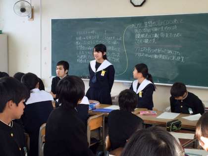生徒議会は生徒会、各クラスの委員長、各種委員長が集い、学校運営に関する話し合いをします。