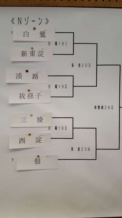 大阪市春季総合体育大会の抽選結果です。トーナメント表中の表示は、会場→白鷺、19→19日、試合開始の順番→?9時.?10時45分.?12時30分.?14時15分