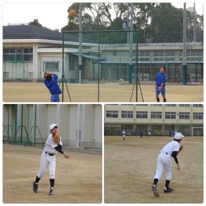 放課後のグラウンドの様子です。陸上部と野球部がボールを投げていました。