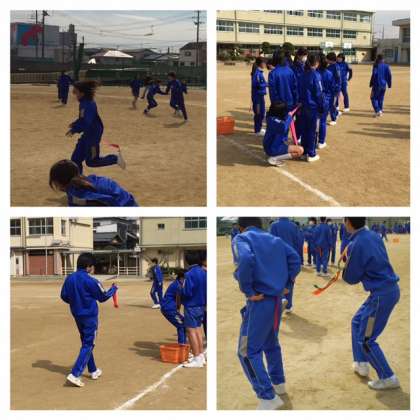 みんなでできて、みんなで楽しめるスポーツは何かなと体育委員が考えに考えて、設定した、いわゆる「しっぽとり」です!