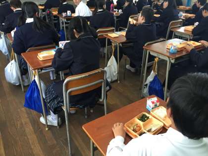 今日の写真は4組の作文を書いている様子と、給食の様子です。