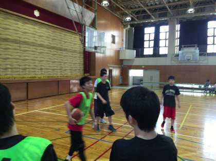 ディフェンスのつき方と、速攻をテーマに頑張りました!ディフェンスについては、月末の春季大会からマンツーマンの新ルールが適用されるので、マンツーマンのつき方の確認を