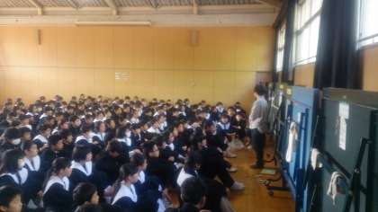 集会強化週間が終わり、定例の学年集会が行われました。佐藤先生から新クラスになって『思う気持ち…』という話をして頂きました。これから集会ごとに2年生の先生方から話をしてもらう予定です。