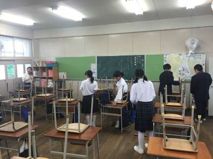 中学校では、各クラス班に分かれて当番制で清掃活動にあたります。