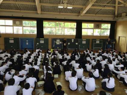 今日の5時間目、総合の時間に1年生は学年で小体育館に集まりました。