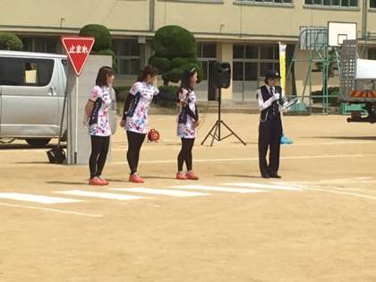 まずは大阪府警察本部の方や【ちゃりん娘】の方から、クイズ形式で交通ルールの説明を聞きました。