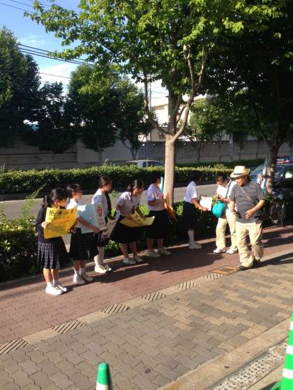 白鷺子ども防災チーム(防災ALT)の一年生中心に二回目の募金活動を行いました。