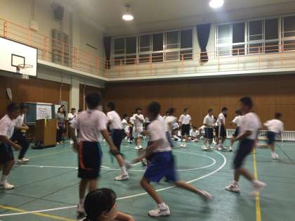 続いて室内オリンピック、第1種目しっぽ取りが行われています。