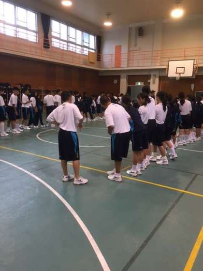 1組と2組、男女混合ボール回し大会中です。すごくもりあがってます。 iPhoneから送信