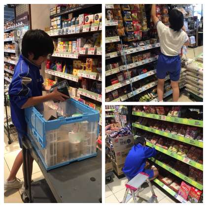 どちらも頑張って商品を棚に陳列していました。