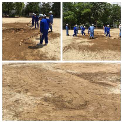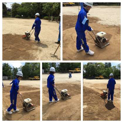 複数の道具を駆使し、公園の凹凸を平らにしていきます。