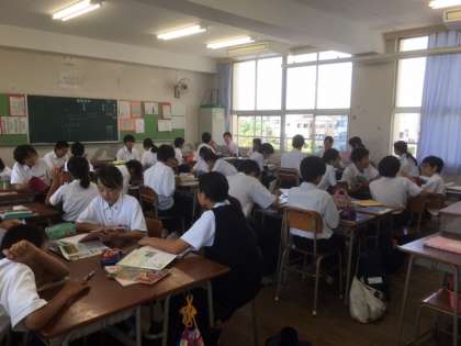 1年生地理では、ICTやアクティブラーニングを積極的に取り入れた授業に取り組んでいます。今日はテストも近いので、班ごとに自分たちで問題を作成し、出し合いました。また手作りノートづくりもがんばっています。手作りノートについては、また後日に紹介しますね。