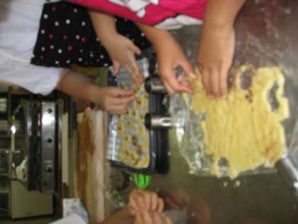 クッキー・桃ジャムパイ・オレンジゼリーを作りました。白鷺中学校で収穫した桃を使い、ジャムにしました。クッキーの型がうまく抜けるかな〜、ゼリーがうまく固まるかな〜、ジャムがうまくできるかな〜、とたくさんワクワクしながらの実習でしたが、全て上手くできました!!