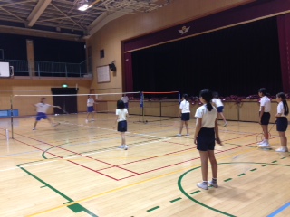 両校合わせて25人が参加し、①試合観戦②シャトルすくい③打ち合いの3つを体験しました。
