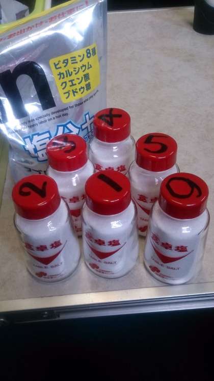 このところ暑い日が続いております。今年もこの塩とタブレットで対策します。