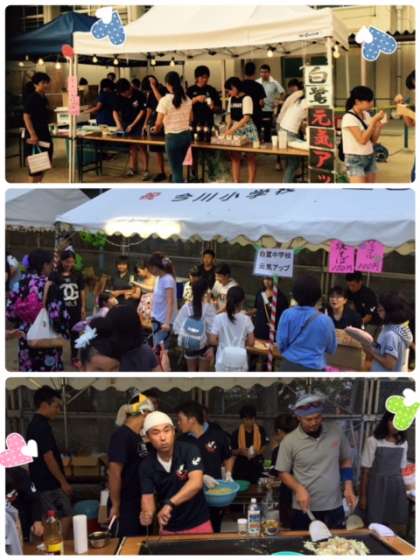教員の方々と元気アップ隊は、育和おどりではワッフル、今川納涼祭では焼きそばのお店も出店しました。