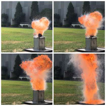 ここでは、天ぷら油燃焼実験や、消火器消火体験や、暗中体験、煙中体験を行います。