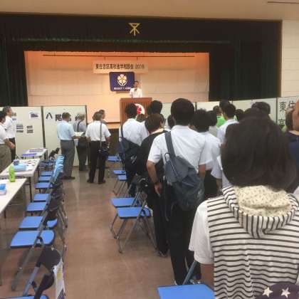 今日、8月28日〔日〕13時〜16時に、東住吉区民ホール〔東住吉区役所3階〕で『東住吉区高校進学相談会』が開催されています。公立、私立計39の高校が、ブースを設けて、様々なことについて進学相談を行っています。区内の中学生、保護者の皆さんが参加し、本校からも多数来場されています。