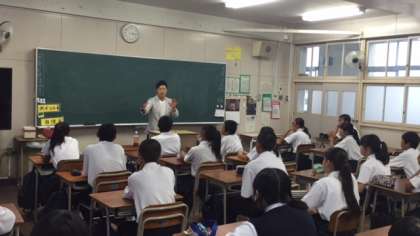 6限目は各学級に芸人さんに入り込んでもらっての活動でした。1・2組にはチキチキジョニーさん、3・5組にはトライアングルさん、4組にはやのぱんに入っていただき、漫才のボケを考える活動…そして何と全員が漫才師さんと組んで、学級みんなの前でショート漫才を発表しました。