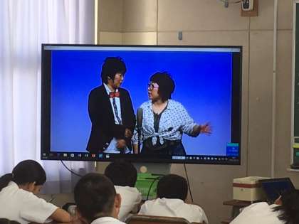 今日の笑育は、ワークシートを使ってボケを考える練習をしたり、DVDでチキチキジョニーさんの漫才を見たり、班ごとでキャラ設定会議をしたり・・という活動をしました。今日の笑育も、盛りだくさんな内容で、どのクラスも大盛りあがりでした。