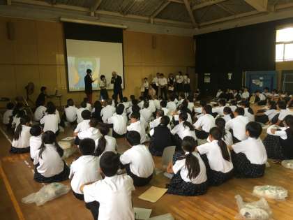 今日は、松竹芸能のトライアングルさんが来てくださいました。1.2.3組は、トライアングルさんと2人1組になり、設定したキャラになりきる練習、4.5組はあいうえおしりとりをしました。いよいよ来週からは、2人1組になっての活動がスタートします。