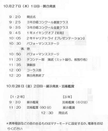 持ち物:しおり、上履き        筆記用具(生徒のみ)