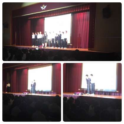 1年生の笑育の発表です。 代表者たちが漫才を披露してくれました。