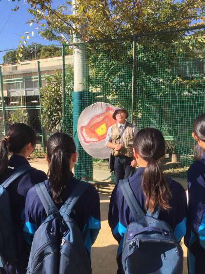 講師としてお招きし、本校生徒に『石の地球』、『地球の道』を