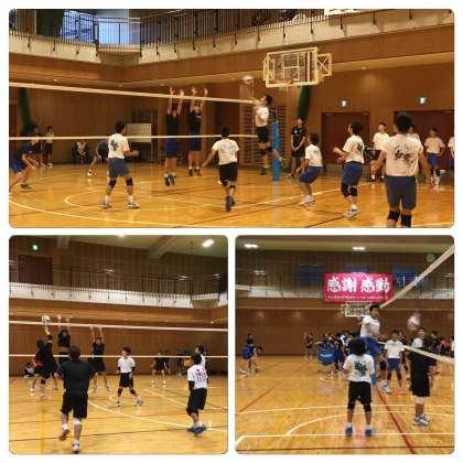 桃山学院高校の体育館をお借りして、堀江中学校、柏原中学校を相手に練習試合をしています。