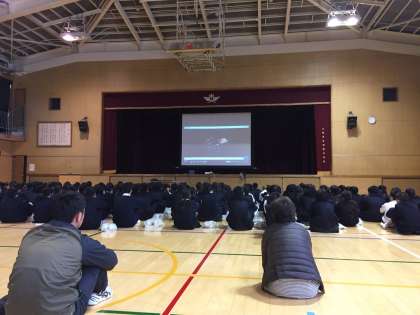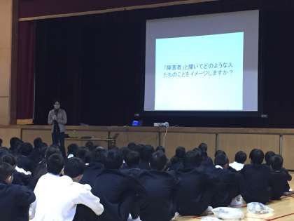 12月6日 午後から、1年生は人権講義。「障害って何だろう」と題して大阪教育大学の松永真純先生のお話をうかがいました。休憩をはさんだ少し長いお話でしたが、皆お話に引き込まれ、とても良い時間を共有できました。