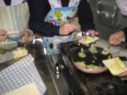 2年生家庭科 調理実習 アップルパイ