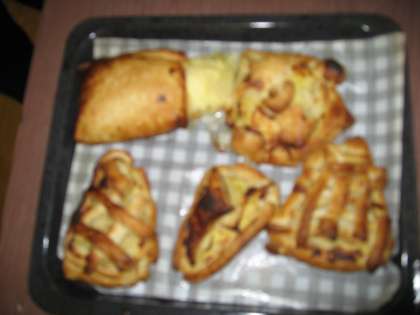 調理実習でアップルパイを作りました。リンゴの皮をむき、砂糖で煮込んだものをパイ生地にくるみました。「粘土みたい〜」と言いながら、おもいおもいの形に仕上げていました。