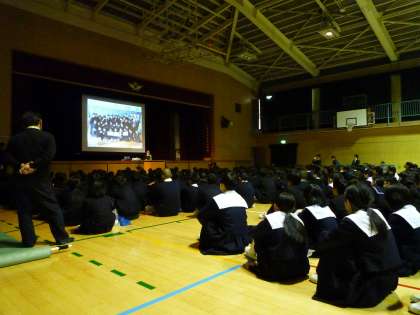 本日、防災講演会がありました。講師として、宮城県から田畑祐梨さんに来ていただきました。田畑さんは、実際に東日本大震災を経験された方です。話を聞いて、今後の自分の生き方や防災に対する考え方を見つめなおすきっかけになりました。