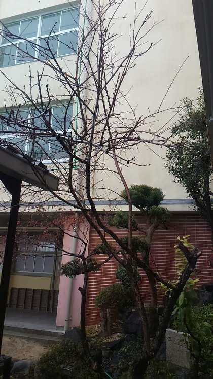 山口県、九州北部で春一番が吹いたとか。そういえば、日中は少し暖かい時もあり、手袋をすることも少なくなってきました。写真は夏休み前になると、たわわに実をつける桃です。今まで息を潜めているようでしたが、うっすらと蕾に緑がさし、春を目指しだしたように感じます。(手前の枯れたように見える木が桃です)