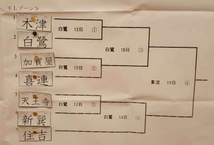 大阪市春季総合体育大会の抽選が行われました。下の写真は1回戦から3回戦までの組み合わせです。1回戦は3月12日(日)本校で9時開始予定です。