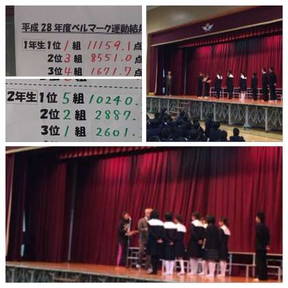 ベルマークの収集で1年、2年の上位3クラスの表彰がありました。