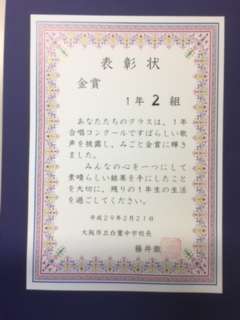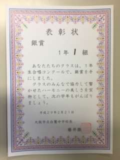 金賞・・1年2組 銀賞・・1年1組