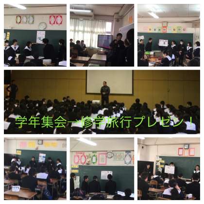 1限は引き続きクラスに戻って、修学旅行の事前学習をしたことの発表会がありました。