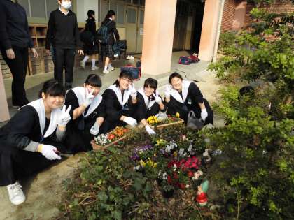 元気アップ隊の生徒達も、一緒に作業に参加し、美しく仕上げる