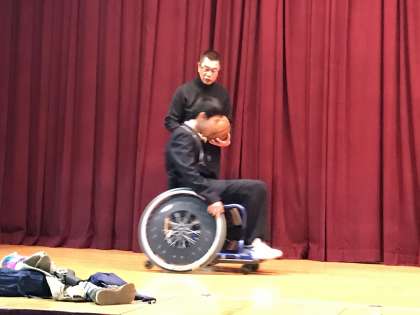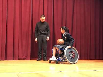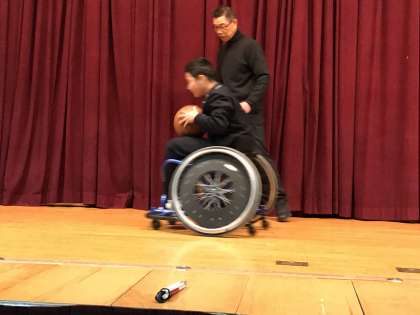 3月9日(木)3・4時間目、大阪体育大学の高橋明先生に来校いただき、人権講話をしていただきました。高橋先生は、1994年リレハンメル冬季パラリンピック日本選手団総監督や、2000年シドニー夏季パラリンピック車いすバスケットボール全日本チーム総監督などを歴任された先生です。思いめぐらす「想像力」と、創りだす「創造力」という「2つのソウゾウリョク」を働かせる大切さについてのお話をはじめ、本当に貴重なお時間をいただき、高橋先生ありがとうございました。