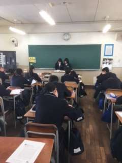 2年生社会科では、今学期より新しい取り組みを始めました。名付けて「スペシャルティーチャー」。毎回、授業の最初に各クラスの社会科係が前に出て、出席確認をした後、スペシャルティーチャーとして、あらかじめ、前回の授業の中から3つ問題を作成してきて、全員の前で発表、みんなで解答する…という制度です。最初5分間のスペシャルティーチャーさん、よろしくお願いします。この制度は、前に先生が体育の公開授業を見に行った時に、体育委員さんが前に出て、積極的に頑張っている姿を見たことから、生まれた制度です。(担当 青木)