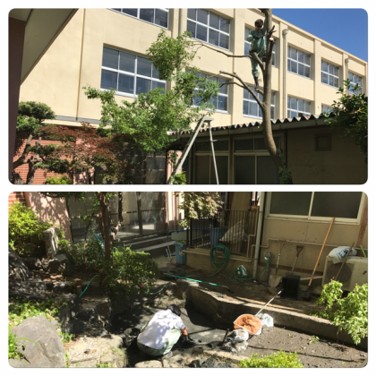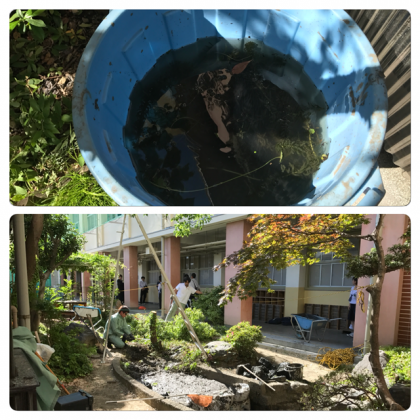 新しいビオトープを管理作業委員さんが暑い中、作業して頂いてます。