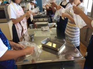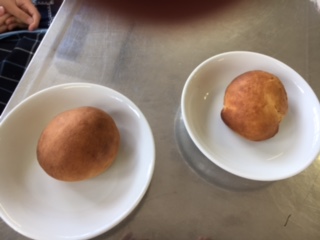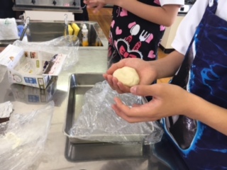 はじめは、こんな粉がパンになるのかな〜と思う生徒が多いようでしたが、こねるうちに形になり生徒達も楽しみながら作ることができました。チョコレートも中に加えて美味しく出来ました。