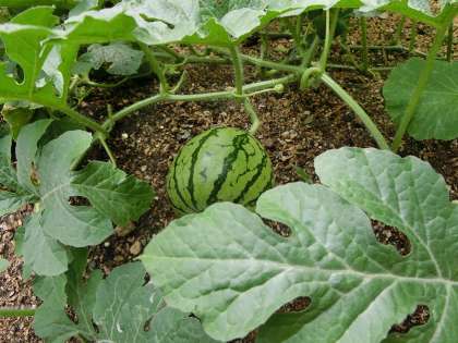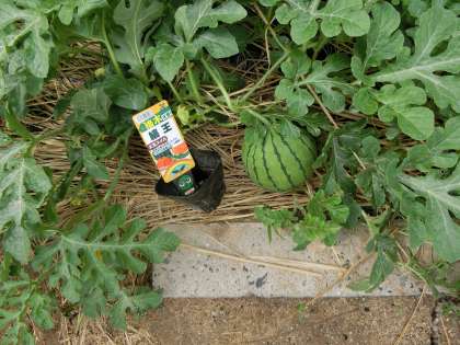 写真(上)チャレンジルームに近い方のスイカは「チカちゃん」