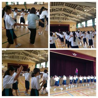 事前学習を1限でした後に、2限以降は地域の方々が指導に入って下さり、一緒に踊りました。