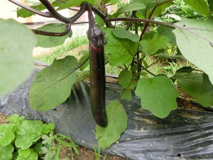 飼育園芸部では今年は茄子の改良品種の栽培に初挑戦し、無事に実をつけてくれました。写真上が丸茄子、写真下が長茄子です。