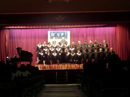 生徒会の司会で始まり、1年生・2年生の合唱コンクール優勝クラスの発表。
