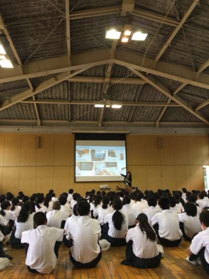 ポイントを絞ったわかりやすい説明で、生徒たちも使う場面や経験の質問に挙手で答えていました。