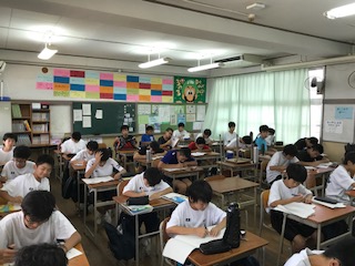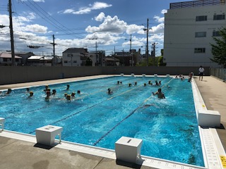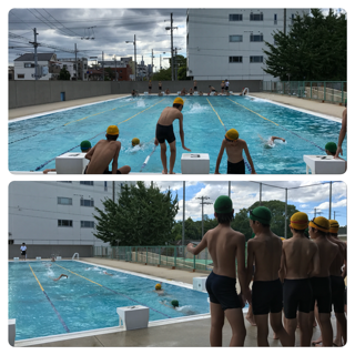 宿題検査、練習会、昼食、水泳(プール)、休憩、宿題大会をしました。