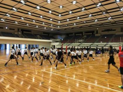 近畿大附属高の記念館に来ています。広々使って練習やってます。これで「大きな体育館」での「緊張感」が取れればと思います。